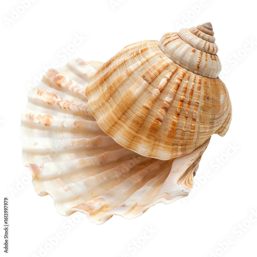 Obraz premium Close-up of a seashell, spiral-shaped, light beige and tan