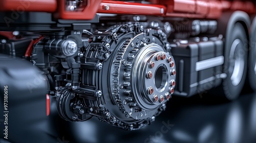 © otwdesign, Fototapeta premium Close-up of a Semi-Truck's Rear Axle and Gear System