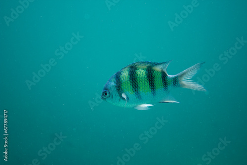 Fototapeta premium Close up of a Sergeant Major underwater in Koh Tao. Abudefduf
