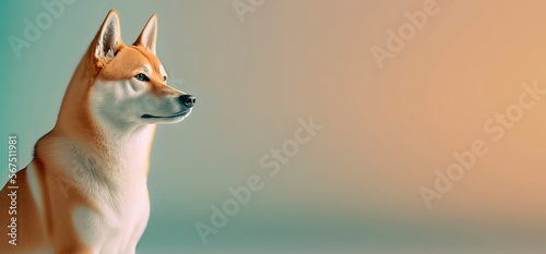 Fototapeta premium close up of a Shiba Inu dog with a blue and orange pastel background. Dog...