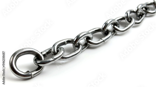 © creative, Obraz premium Close-up of a shiny metal chain on white background.