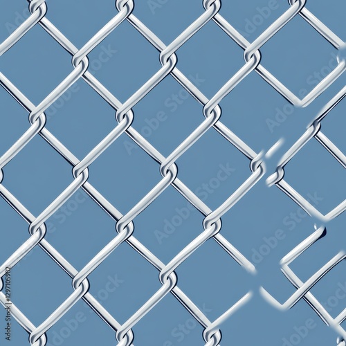 Fototapeta premium Close-up of a silver chain-link fence against a blue background, showcasing...
