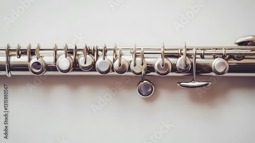 © abdul, Fototapeta premium Close-up of a Silver Flute, Musical Instrument