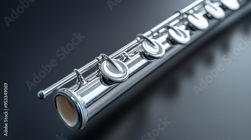 © Arbystudio, Fototapeta premium Close-up of a Silver Flute with Keys