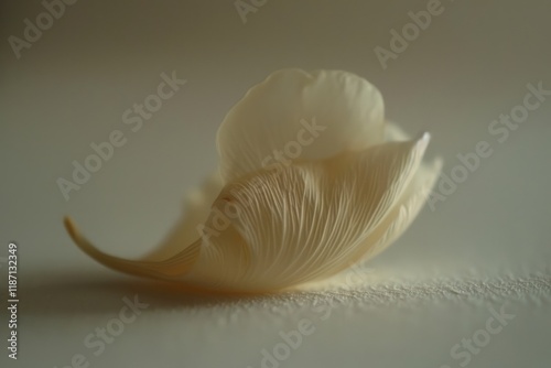 © BerkahStock, Naklejka premium Close-up of a single, delicate, creamy-white flower petal with subtle texture and soft lighting against a muted background.