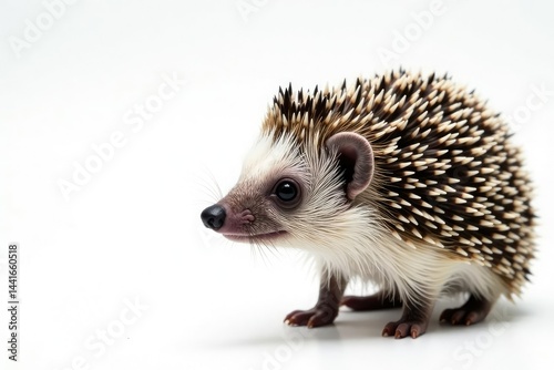 Fototapeta premium Close-up of a single hedgehog against a stark white backdrop, wildlife photography, studio shot
