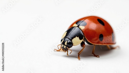 © Manae, Naklejka premium Close-up of a single ladybug on white background, texture, photography, simple