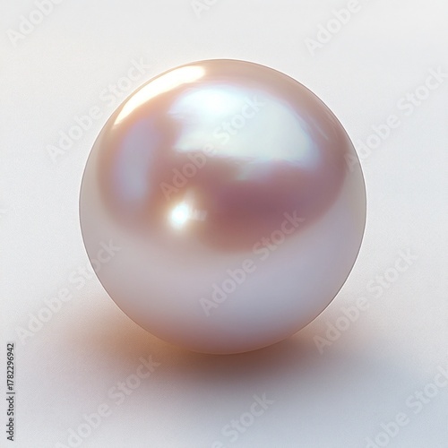 © Ulyana, Obraz premium Close-up of a single smooth and shiny pearl with iridescent hues reflecting soft light on a neutral background, evoking elegance and purity