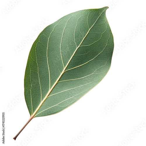 Obraz premium Close-up of a single vibrant green leaf with intricate vein patterns on a...