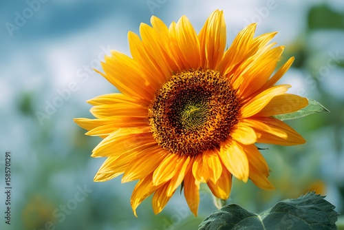 Fototapeta premium Close-up of a single vibrant sunflower in full bloom, against a soft, blurred...
