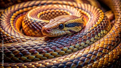 © Arnada, Fototapeta premium Close-up of a Slowly Breathing Coiled Snake - Documentary Wildlife Photography