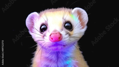 © Olga, Fototapeta premium Close-up of a small animal with a pink snout, sporting purple and blue fur on its face