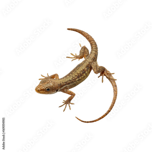 © Rivi, Naklejka premium Close-up of a Small Brown Lizard on a Black Background