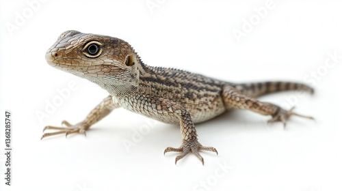 © Drapix, Fototapeta premium Close-up of a small lizard with intricate patterns on its skin against a white background.