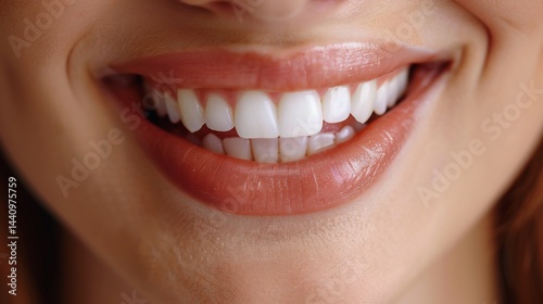 © Muhammad, Fototapeta premium Close up of a smiling mouth with a perfectly fitted dental implant