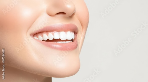 © Nipa, Obraz premium Close-up of a smiling mouth with bright white teeth and smooth skin.