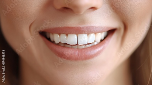 Fototapeta premium Close-up of a smiling person's mouth showcasing healthy teeth.