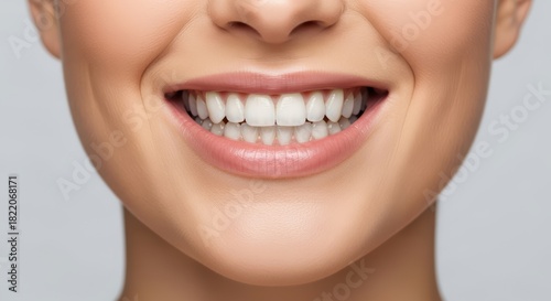 © photoplotnikov, Obraz premium Close-up of a smiling young caucasian female showing healthy teeth