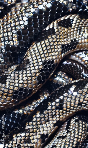 © StasySin, Obraz premium Close-up of a snake's iridescent scales