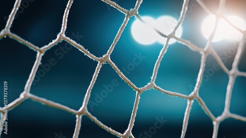 Fototapeta premium Close-up of a soccer net with blurry lights