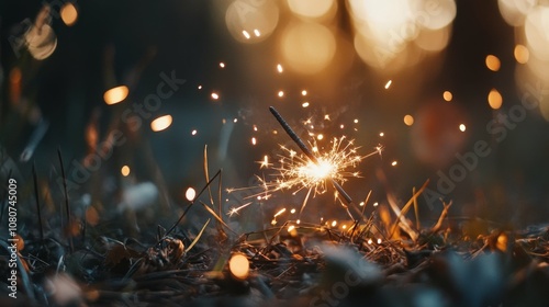 Obraz premium Close-up of a sparkler burning, soft focus on sparks,