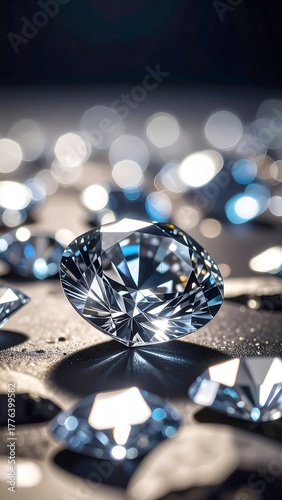 Fototapeta premium Close-up of a sparkling diamond surrounded by smaller gems, reflecting light...