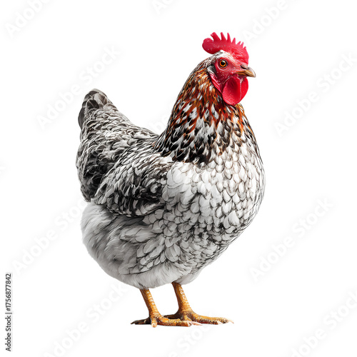 © soban, Fototapeta premium Close-up of a speckled hen isolated on transparent background