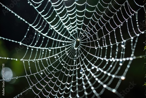 © Vii, Naklejka premium Close-up of a spider web with dew drops, great for abstract or natural themes