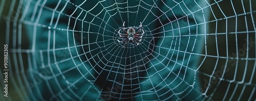 © AI_Imaginator, Obraz premium Close-up of a spiderweb with a spider in the center.