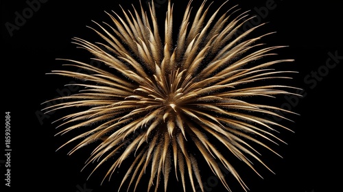© wang, Obraz premium Close-up of a spiky, spherical plant structure against a black background