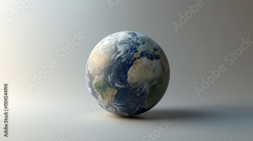 Fototapeta premium Close-up of a spinning globe with clearly visible continents and oceans, highlighted by dynamic lighting on a clean, minimalist studio backdrop.