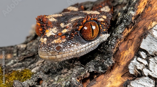 © RAKSIWAH, Naklejka premium Close up of a Spiny tailed Gecko on Tree Bark