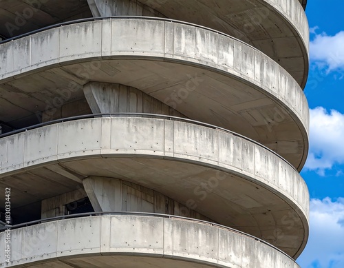 © Arif, Fototapeta premium Close-up of a spiral concrete structure against a blue sky