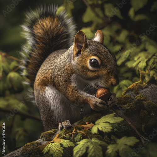 © Alla, Obraz premium Close-up of a squirrel nibbling on an acorn