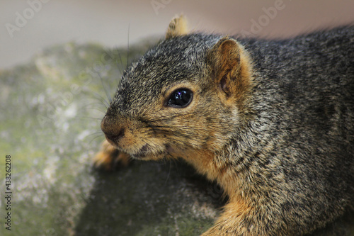 Fototapeta premium Close up of a squirrel resting on a boulder.