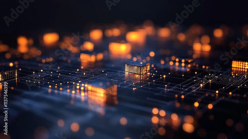© Nenone, Obraz premium Close-up of a star map with a glowing path indicating a journey through time, Abstract world map with glowing lines light technology