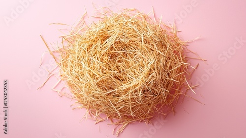 Fototapeta premium Close-up of a straw nest on a soft pink background, ideal for nature-themed...