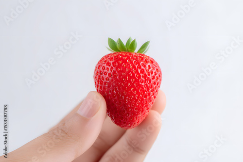 © Oksana_Latysheva, Fototapeta premium Close-up of a Strawberry Held by Hand