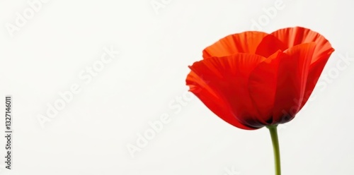 Naklejka premium Close-up of a striking red poppy against pure white, wildflower, single...