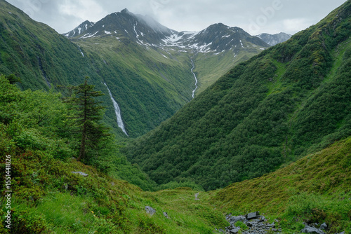 © pavlofox, Naklejka premium Close-up of a stunning waterfall with rising mist