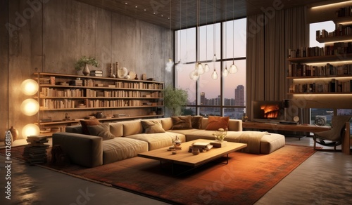 Naklejka premium Close Up of a Stylish Couch. Luxurious Feel of an Industrial Loft Living Room