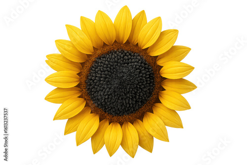 Fototapeta premium Close-up of a sunflower blooming, showcasing its vibrant yellow petals and dark center against a transparent background