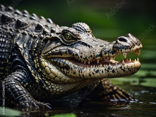© Jzef, Fototapeta premium Close-Up of a Swimming Crocodile in South American Swamp Ecosystem
