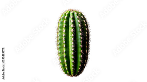 © Maestro, Naklejka premium Close-up of a tall green cactus plant with sharp spines, cut out transparent