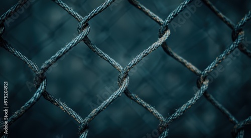 © Balaraw, Fototapeta premium Close-up of a tangled wire mesh fence