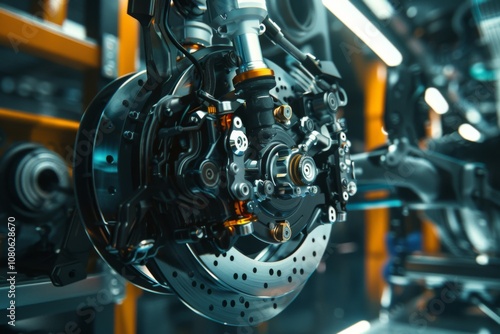 © NikoG, Fototapeta premium Close up of a technician working on an electric car brake