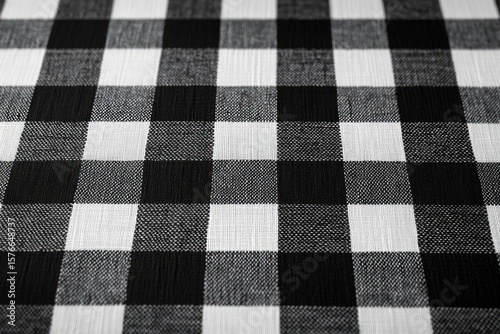 © btiger, Fototapeta premium Close-up of a textured black and white checkered fabric pattern with interwoven threads creating a grid design