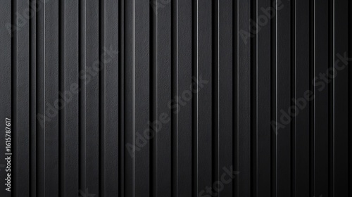 © Tanakrit, Obraz premium Close-up of a textured black corrugated metal surface with vertical ridges and subtle reflections.