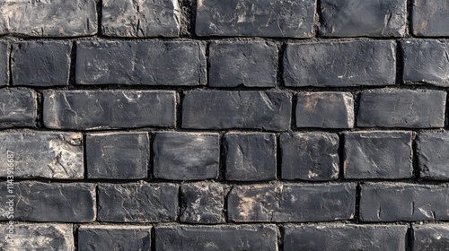 Fototapeta premium Close-up of a textured black stone wall with uneven bricks, creating an industrial and rustic ambiance.