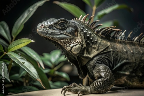 © Animal Photo, Fototapeta premium Close-up of a Textured Iguana with Spiky Scales